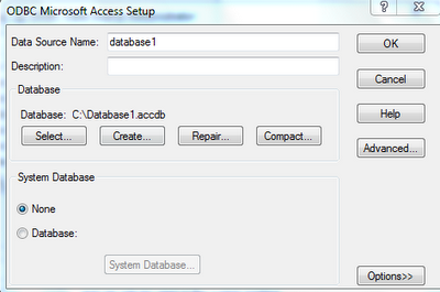 and then again click on OK button of “ODBC Microsoft Access Setup” window.