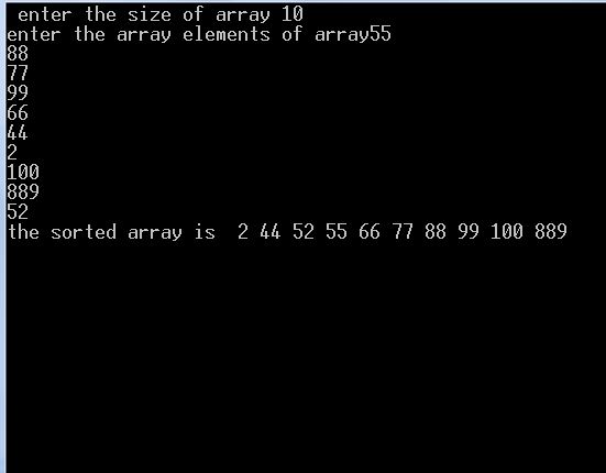 printf("the sorted array is ");