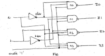 b) Write the VHDL code for 2*4 decoder. Circuit of decoder is given below. [Marks 8]